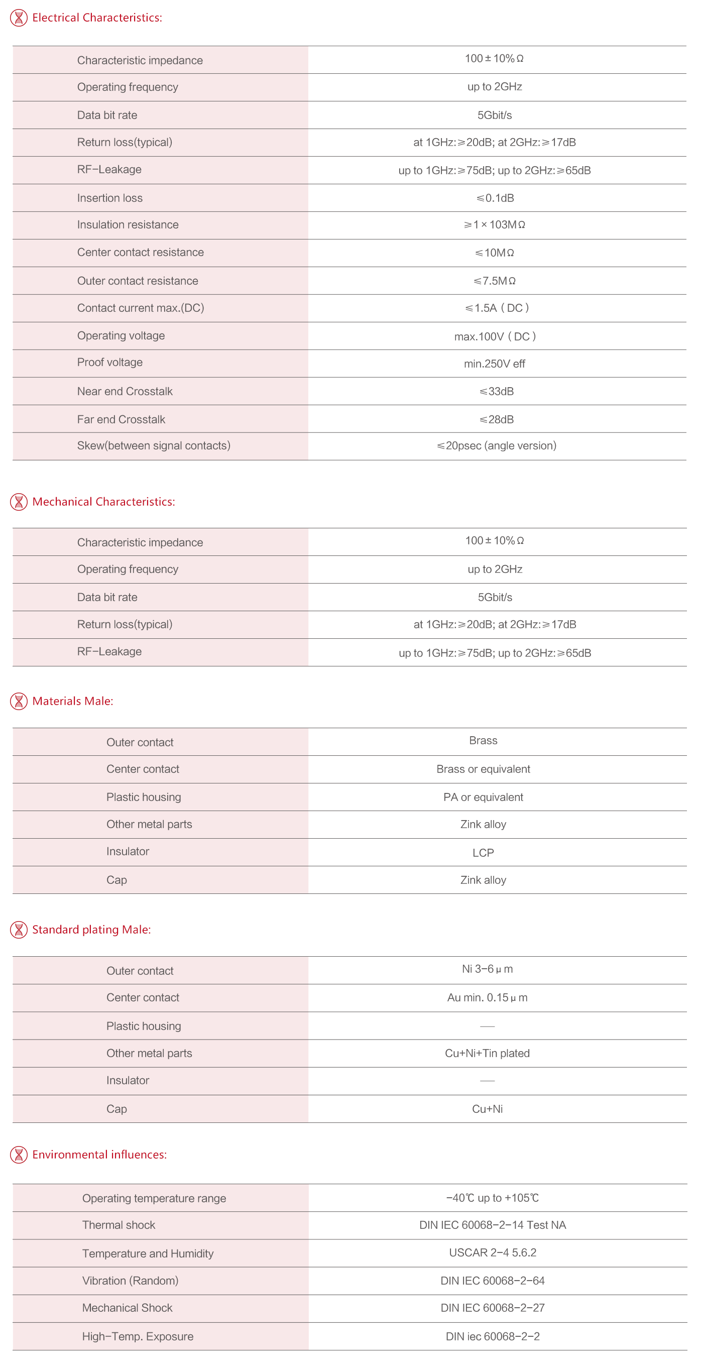 電器性能阻抗100Ω,頻率范圍DC-6GHZ,回?fù)p≥20dB(DC-1GHZ), ≥17dB(1GHZ-2GHZ)。